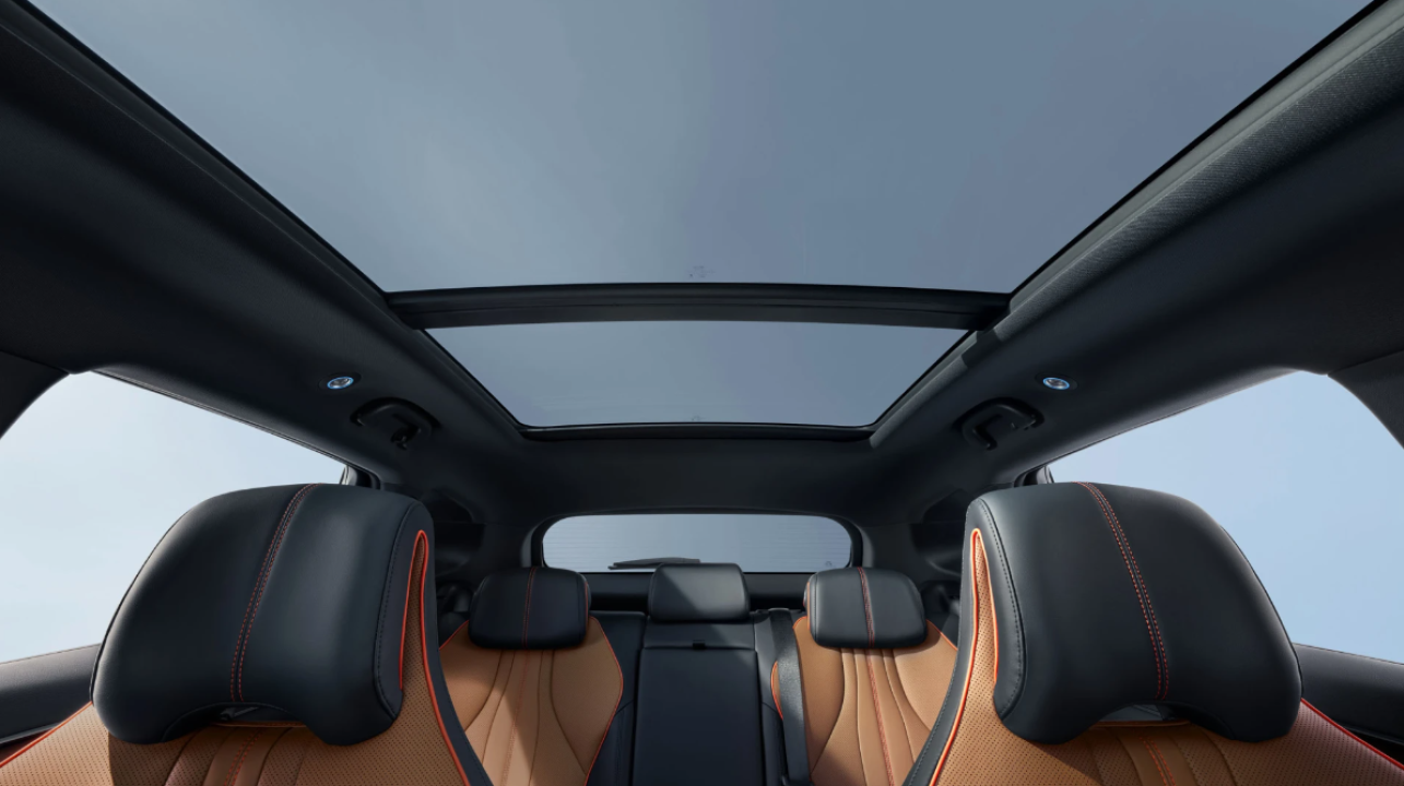 Plafon panoramic din sticlă cu deschidere și parasolar electric, cu protecție anti-prindere.